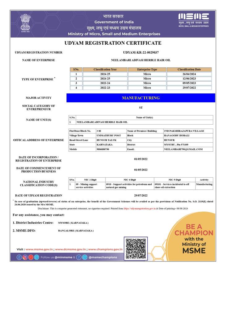 Original Adivasi Karnataka Hakkipikki Neelamberi Hair Oil Brand