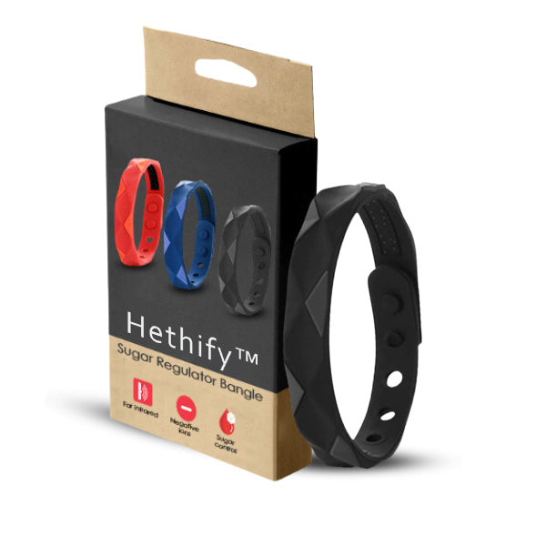 The Hethify™ Sugar Regulator Bangle is infused with negative ions, which are emitted from the bracelet and absorbed by the body through the skin. The negative ions help to improve circulation, which can lead to a reduction in blood sugar levels. Additionally, negative ions can help to regulate insulin secretion and improve insulin sensitivity, which is crucial for maintaining healthy blood sugar levels.
