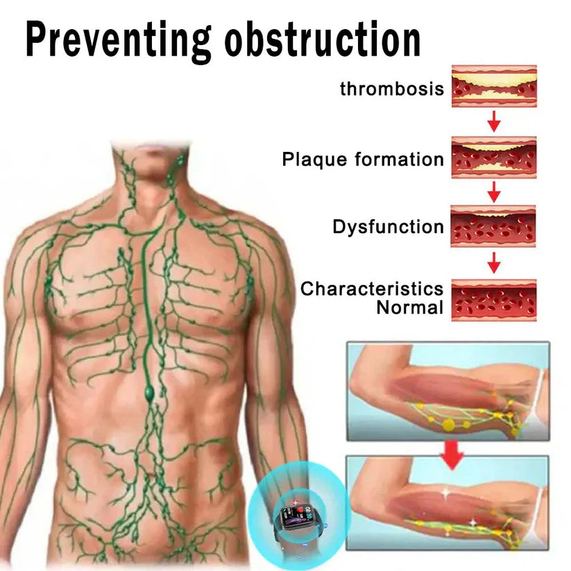 The bracelet uses 850 nm light to penetrate blood vessels directly. This stimulates the production of nitric oxide, which improves blood sugar sensitivity and insulin resistance. This increases the absorption of glucose into the bloodstream, reducing the build-up of excess glucose and balancing blood sugar levels.