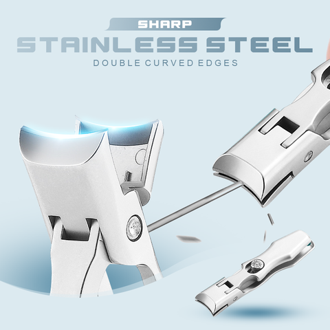 The stainless-steel blades with double curved edges are very sharp on this nail tool. The strong concave wide jaw allows trimming with precision for smooth and clean nails. Works great especially at hard nails for man and elderly.