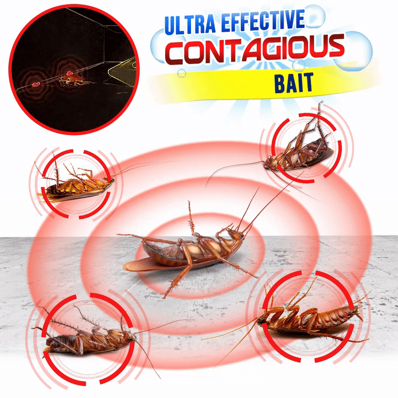 It presents a highly effective solution in the battle against cockroach infestations. This innovative bait doesn't just target the roaches that consume it directly; it goes a step further. Each cockroach that comes into contact with the bait can inadvertently become a carrier, spreading contamination to up to 40 other cockroaches through direct contact.