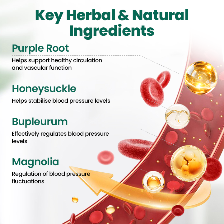 - Honeysuckle :Known for its powerful health-enhancing properties, Honeysuckle supports cardiovascular function by aiding in the maintenance of optimal blood circulation. Its natural properties help stabilize blood pressure and enhance vascular function for long-term heart health.