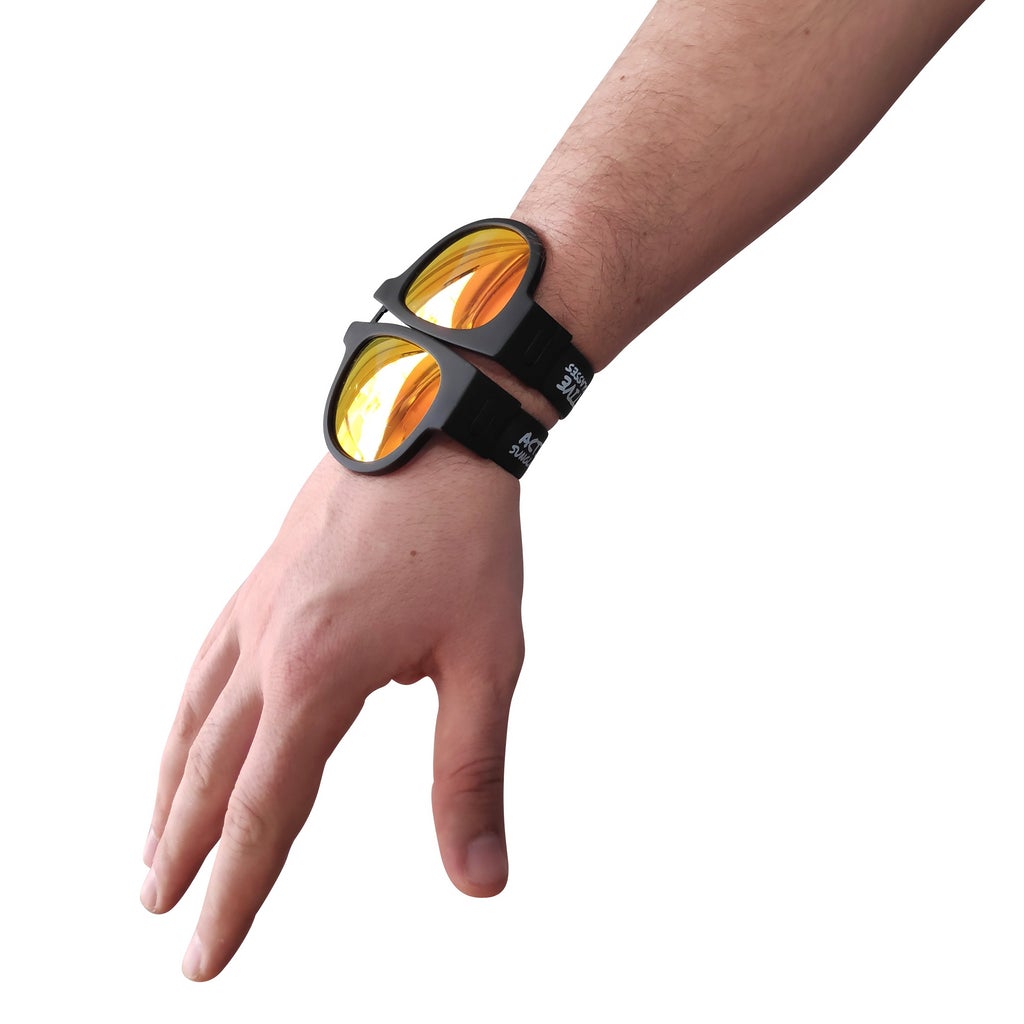 ACTIVE SUNGLASSES has a revolutionary style, a unique innovative and interesting design. The secret is that there is a special hinged nose bridge on the frame, and a metal spring coated with silicone in the temple. ACTIVE SUNGLASSES is the world's first sunglasses that can fit snugly on your head, so that they not only do not fall off, but also bend and attach to your wrists, ankles, bicycle handlebars, car steering wheels, or anywhere else.